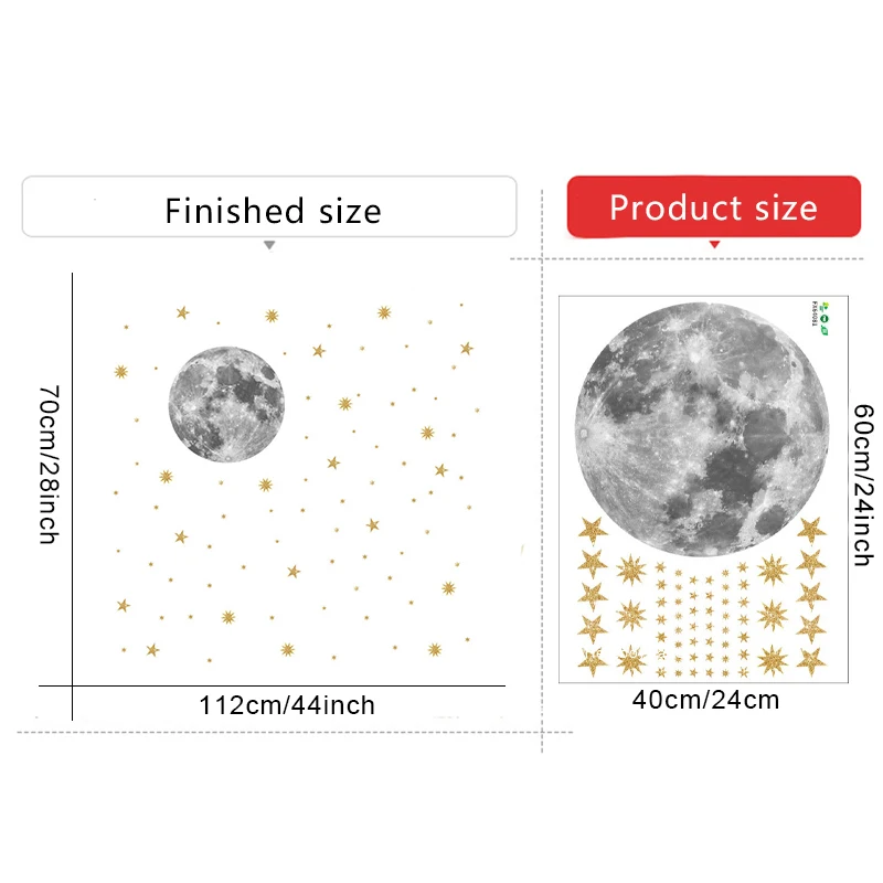 Серая луна, наклейка на стену для детской комнаты, гостиной, Настенный декор, золотые звезды, виниловые наклейки, печатные обои, домашний декор, плакат, художественные фрески