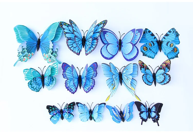 12 шт. 3D двухслойные бабочки, настенные наклейки, декор для гостин...