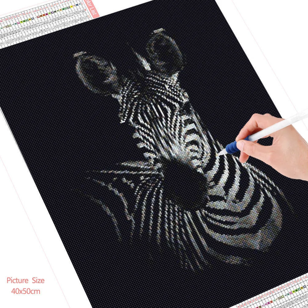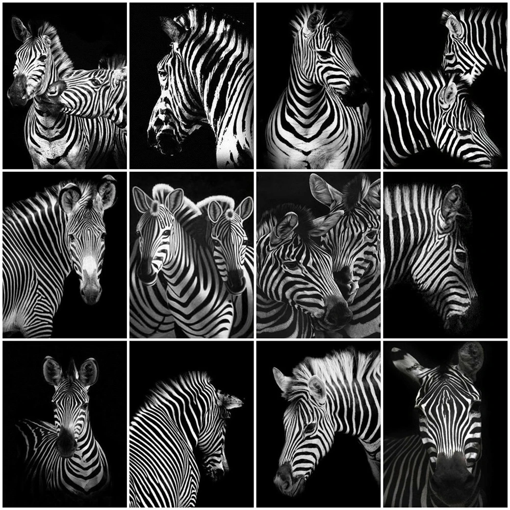 Картина из страз с изображением зебры, черного и белого цветов