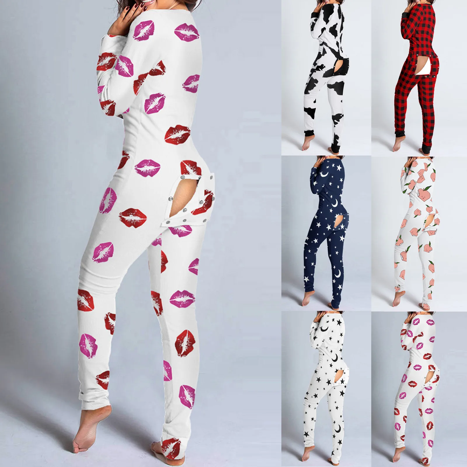 Пикантные женские пижамы, Комбинезоны на пуговицах, с передним пуго...