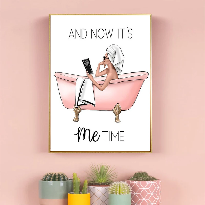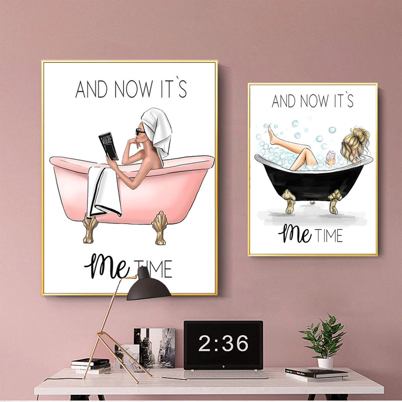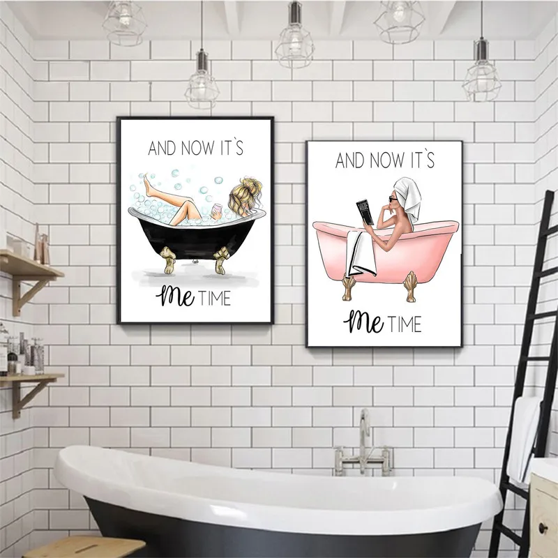 Постер на стену в скандинавском стиле для ванной, Картина на холсте с высокой печатью для модной девушки и ванны, картина для украшения дома, картина