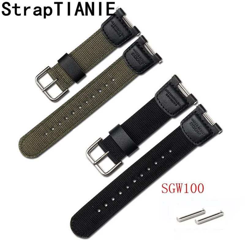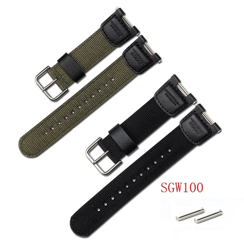 Ремешок нейлоновый кожаный для Casio SGW-100 SGW100 SGW200, мужской спортивный сменный Браслет с пряжкой из нержавеющей стали, аксессуары для часов армейского зеленого цвета
