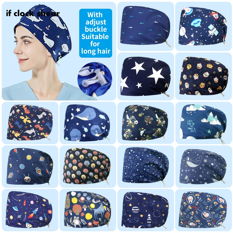 Шапка для медсестры с цветочным узором, регулируемая шапка с разным...