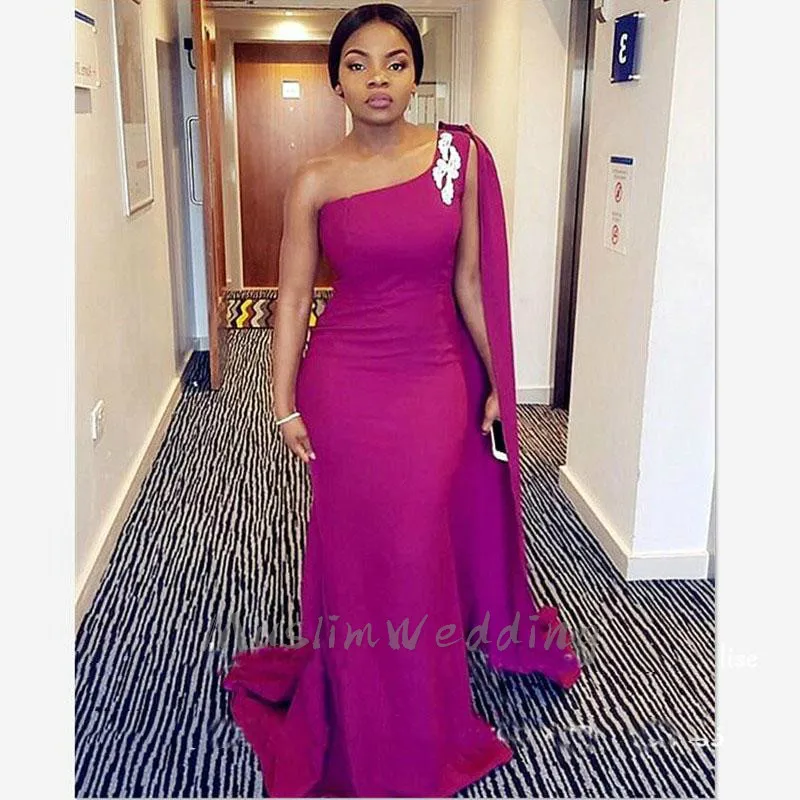 Простой одно плечо фуксия Выпускные платья русалки размера плюс длинное вечернее платье с кружевом недорогие лентой Поезд атласные вечерние платья