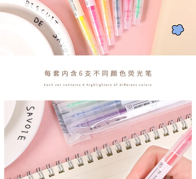 : Mohamm двойной текстовый Маркер ручки 6 цветов Творческий Scholl Velvet Smooth, поставка