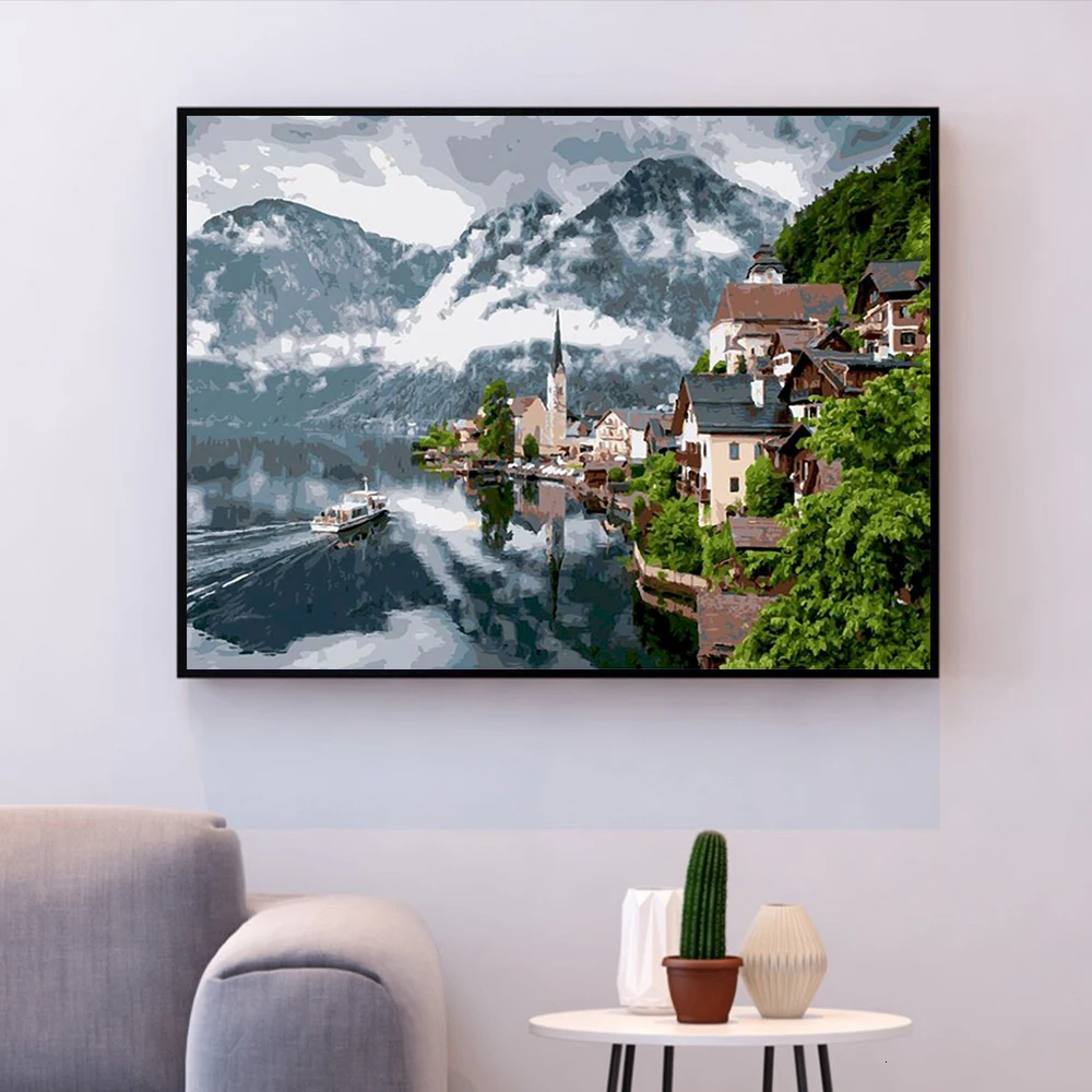 Замок дом в деревне картины DIY картина по номерам пейзаж акрил взрослая Рисование Живопись на холсте Декор для дома подарок