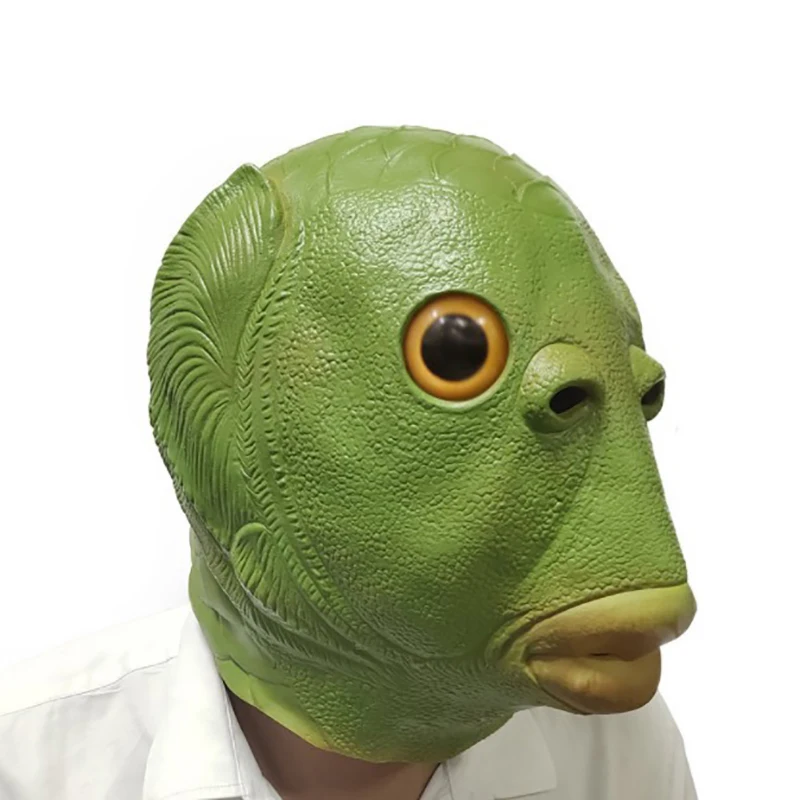 Маска для Хэллоуина унисекс, карнавальвечерние маска для взрослых, зеленая маска с головой рыбы, головной убор