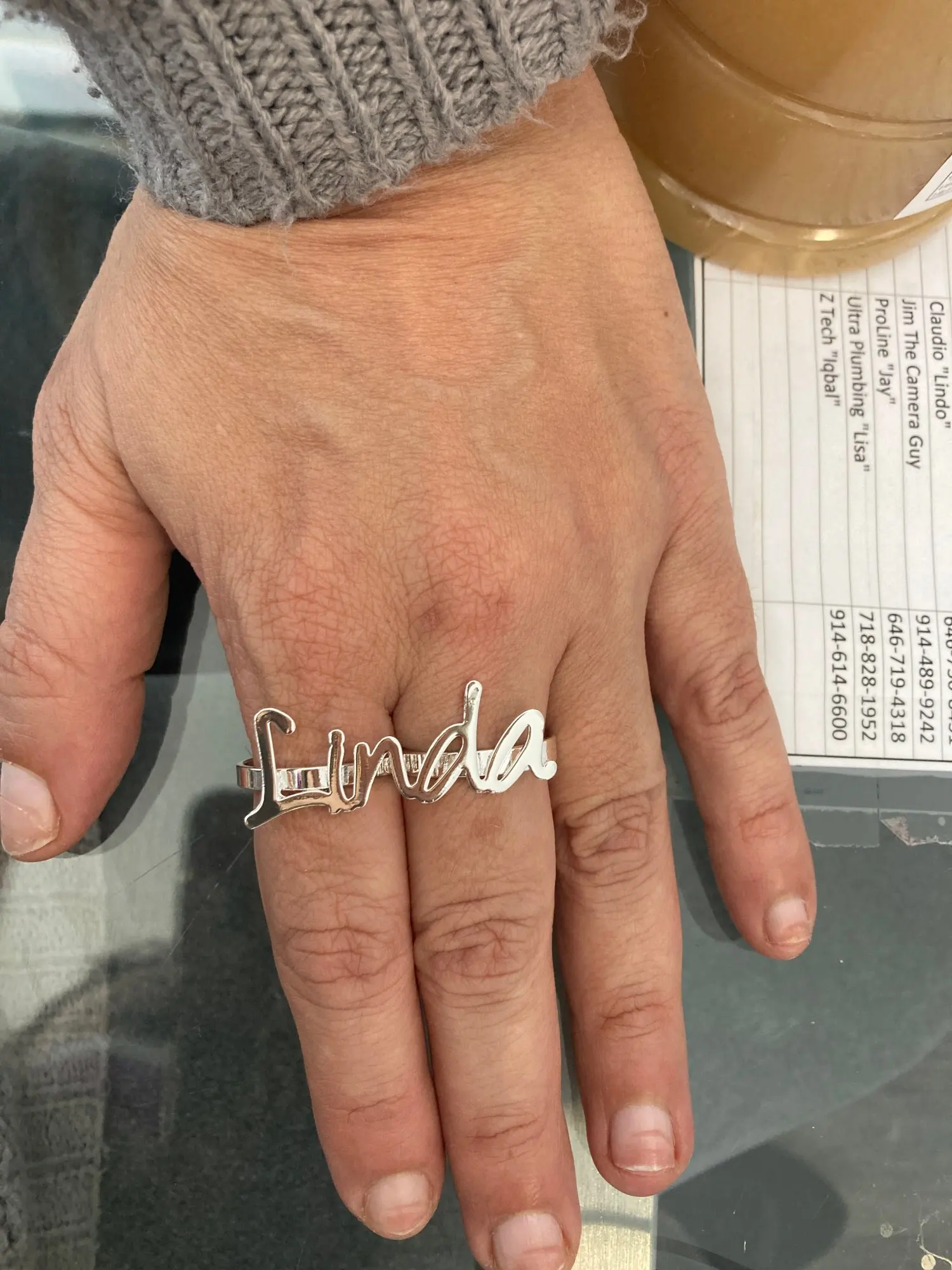 Модное и простое персонализированное двойное кольцо с именем шрифта...