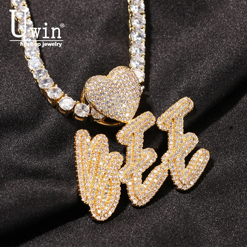 Ожерелье с именем Uwin с застежкой в форме сердца, двухслойная кулон с циркониевой буквой, ювелирные изделия в стиле хип-хоп, лучший подарок