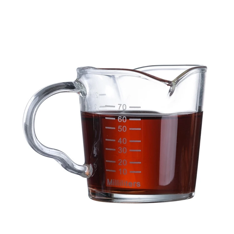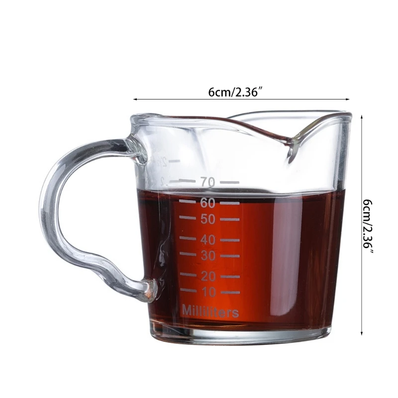Жаропрочный стеклянный измерительный мерный стаканчик для кофе эспрессо с двойным ртом ОУН