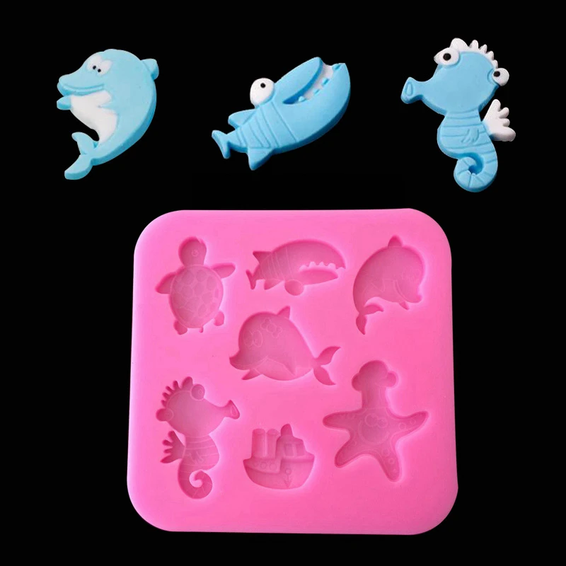 Мультфильм океан рыбы помадка раковина раковины торта силиконовые формы для приготовления конфет шоколада плесень...