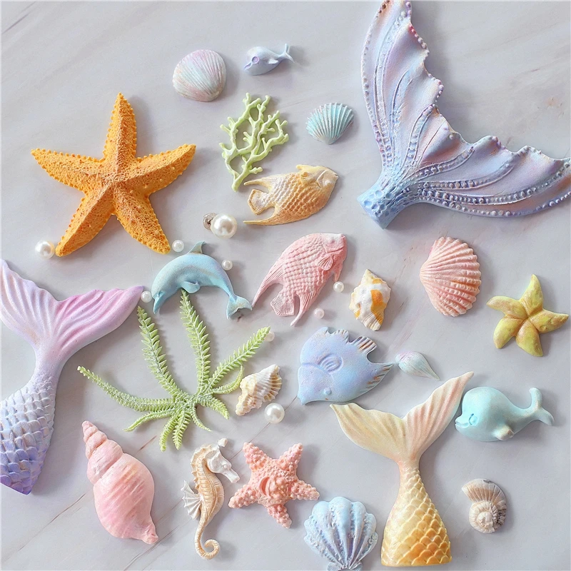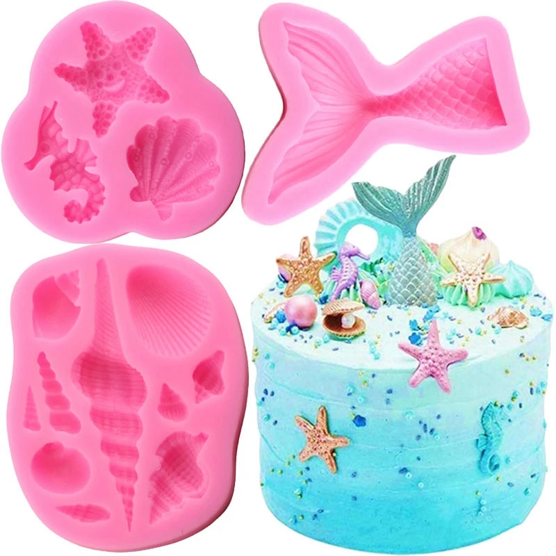 3D хвост русалки Силиконовые Формы Раковины Морская звезда Мыло Плесень Торт украшения инструменты Су...
