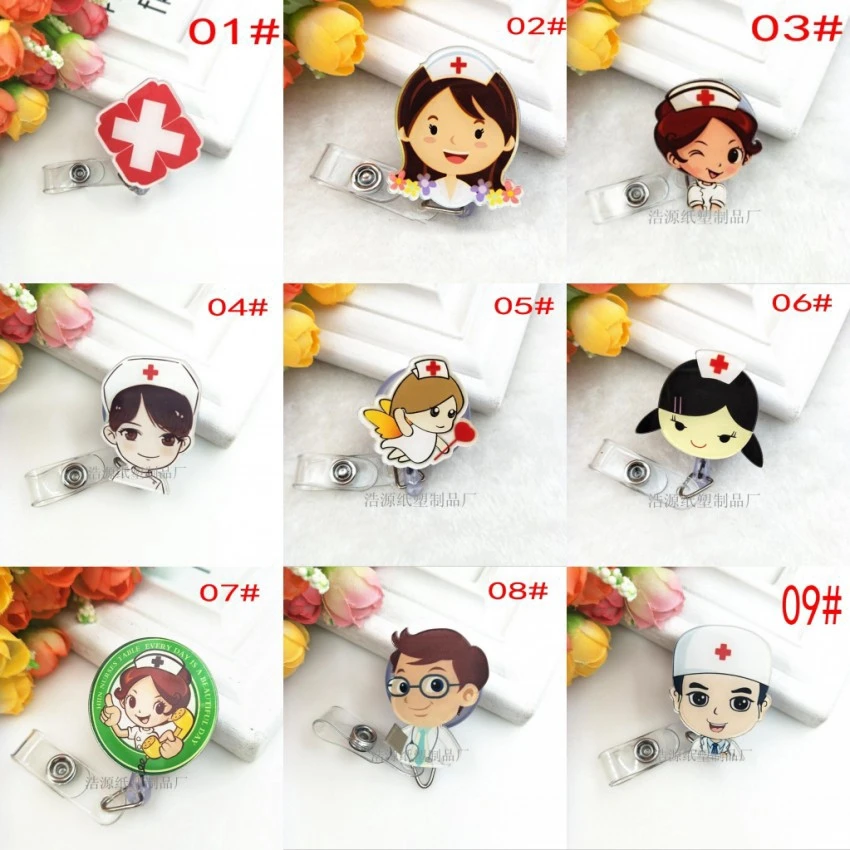 Бейдж с мультяшным врач-медсестра, выдвижной офисный шнурок для удостоверения личности, именная бирка, визитница, кольцо, зажимы для ключей