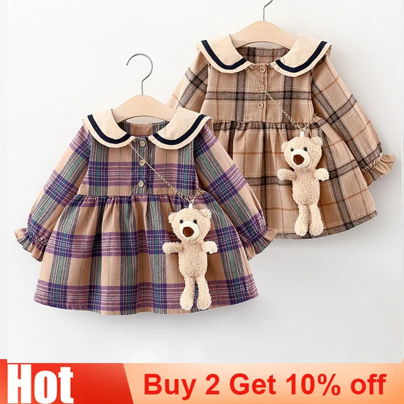 Осенний комплект из 2 предметов Hibobi, клетчатое платье с подвеско...