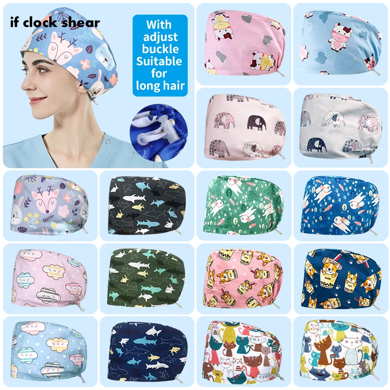 Регулируемая моющаяся медицинская шапочка с кнопками, женская шапоч...