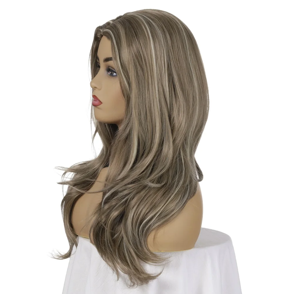 Длинные волнистые парики для белых женщин парик коричневый блонд средняя часть косплей вечерние синтетический костюм парики термостойкие волосы