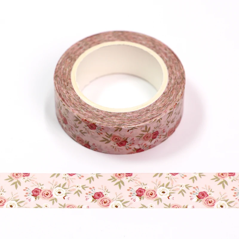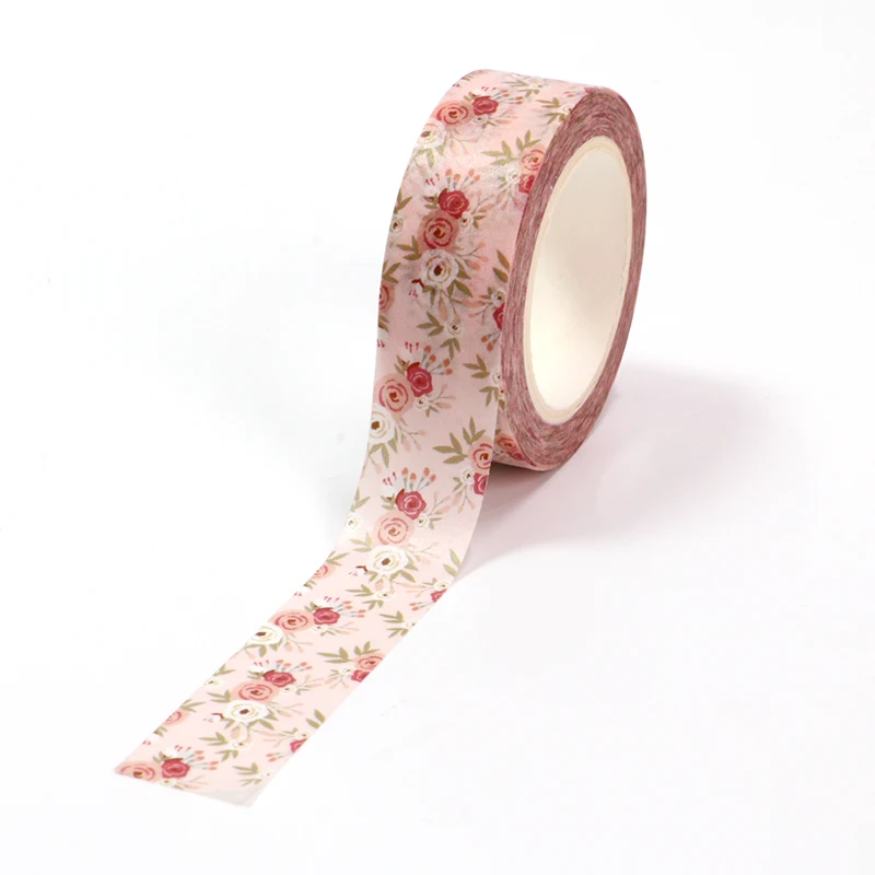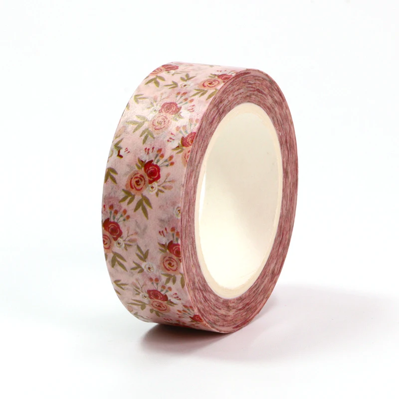 Лента Клейкая декоративная Васи для скрапбукинга, 1 шт., 15 мм * 10 м, красные цветы, зеленые листья, лента для скрапбукинга, товары для школы и офиса