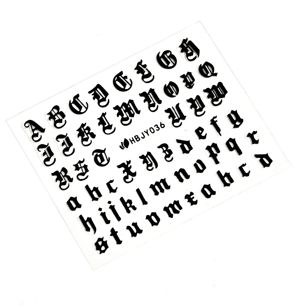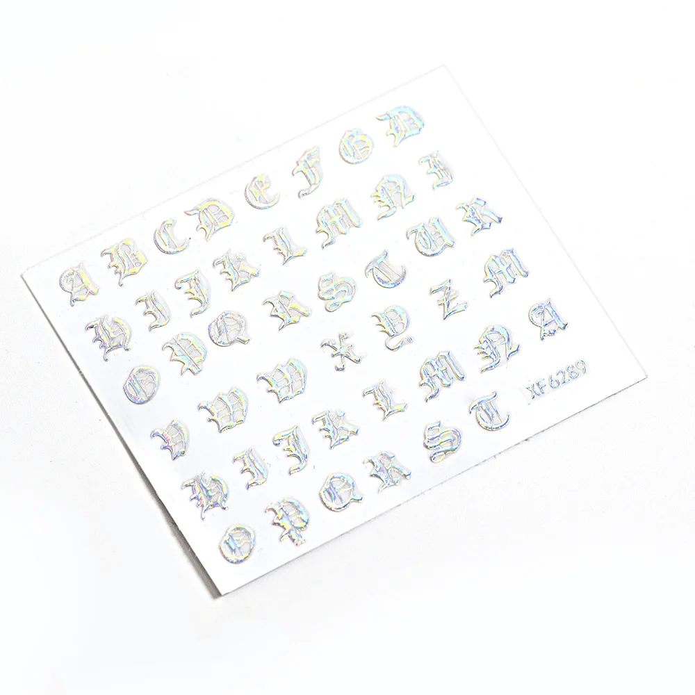 3d-буквы алфавита, наклейки для ногтей, наклейки, лазерные Серебристые черные английские слова, переводки для дизайна ногтей, магнитные наклейки для маникюра