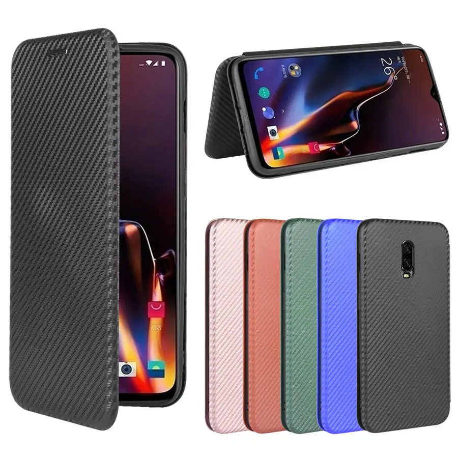Углеродное волокно кожаный флип-чехол для телефона для мобильного телефона Oneplus 6 / 6T / 5 / 5T / 3 / 3T