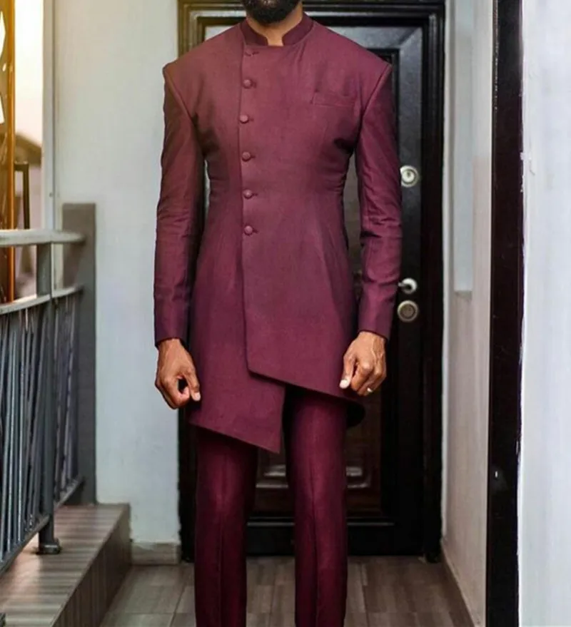 Бордовый Африканский мужской костюм, длинный официальный деловой пиджак, Блейзер, 2 шт. (пиджак + брюки)