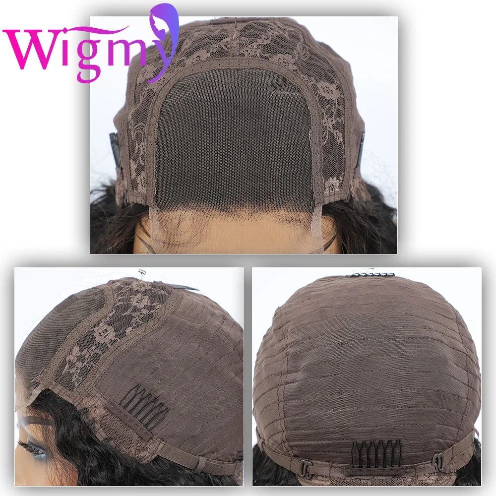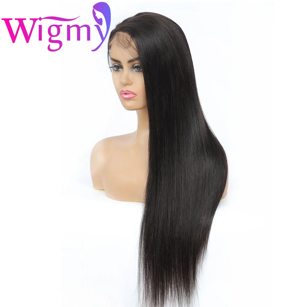 Парик WIGMY из прямых человеческих волос на сетке для черных женщин, предварительно выщипанный бразильский парик из неповрежденных волос