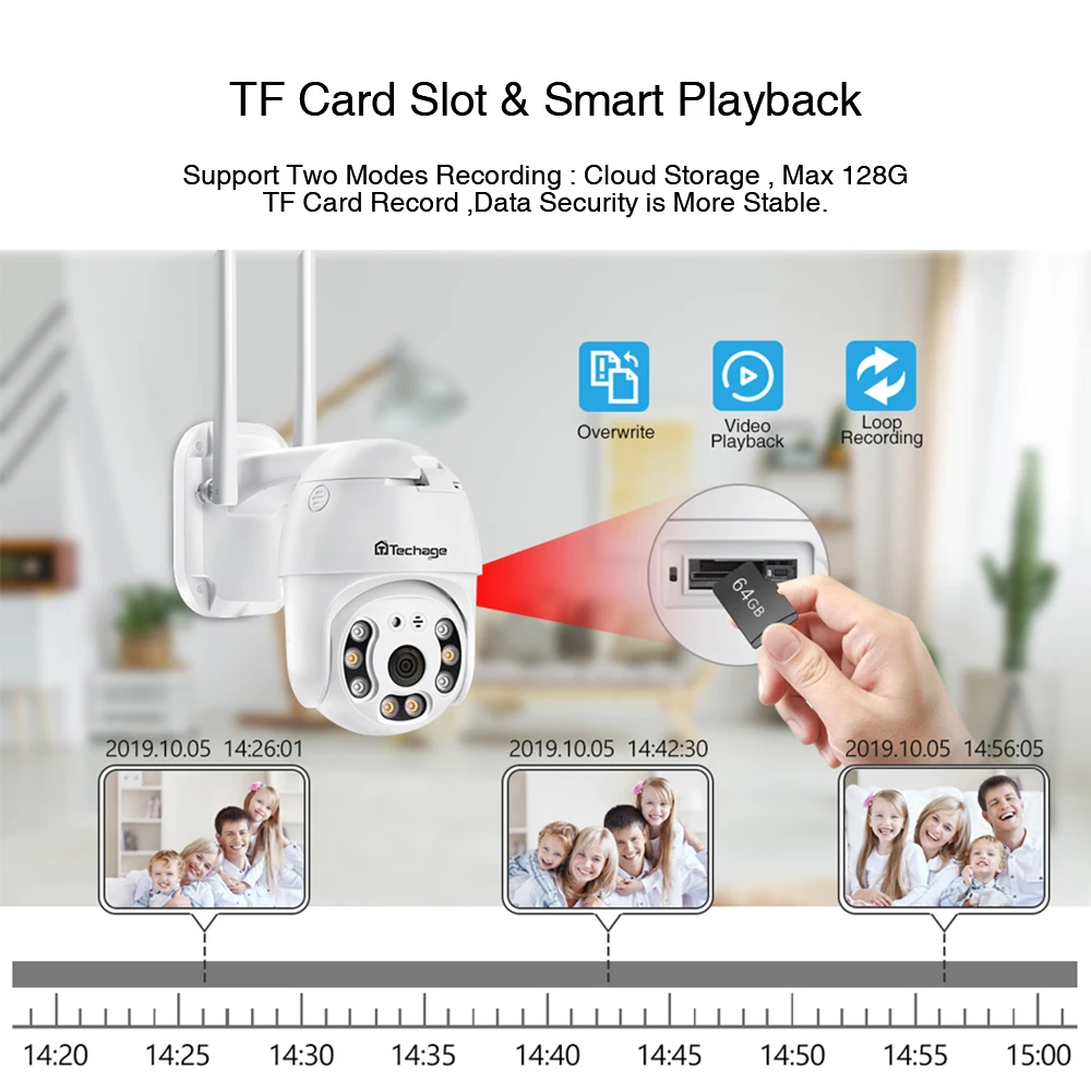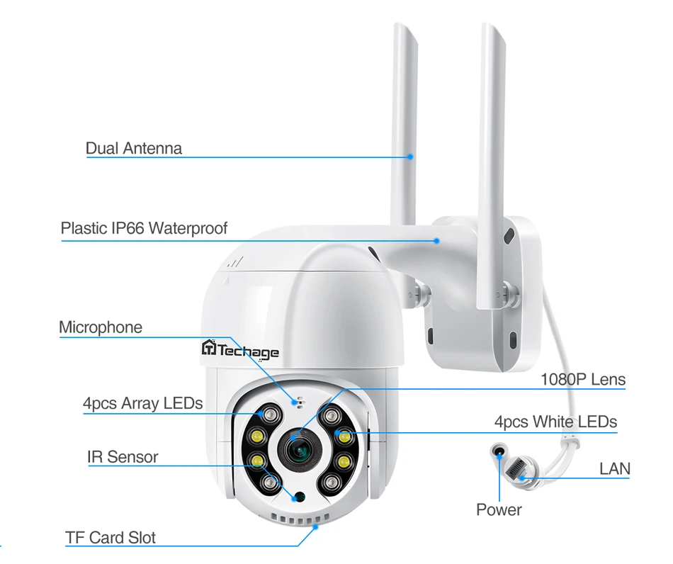 Techage 1080P WiFi PTZ IP камера наружная беспроводная 2MP камера наблюдения умная AI человекоидная Обнаружение двухсторонняя аудио запись