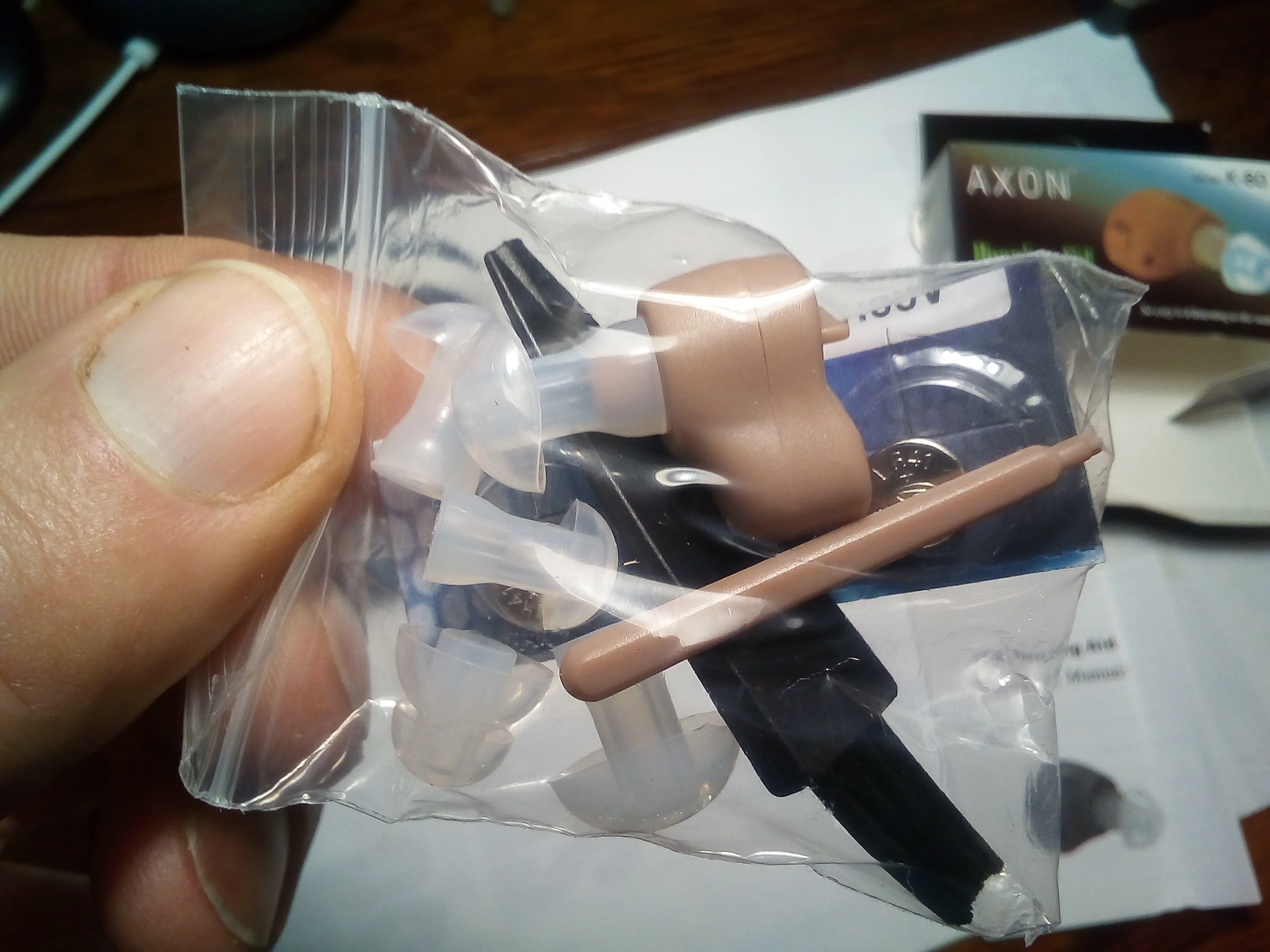Товар дошел из Китая за две недели. Все как в описании. Вначале не работал. Поставил вторую батарейку из присланного комплекта, аппарат заработал. Дело было в элементе питания. Брал маме она очень довольна слышимость хорошая. Рекомендую.