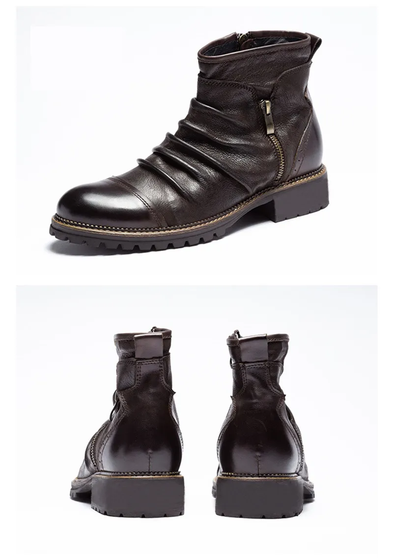 Ботильоны мужские кожаные на молнии, Повседневные Дышащие, мотоцикл...