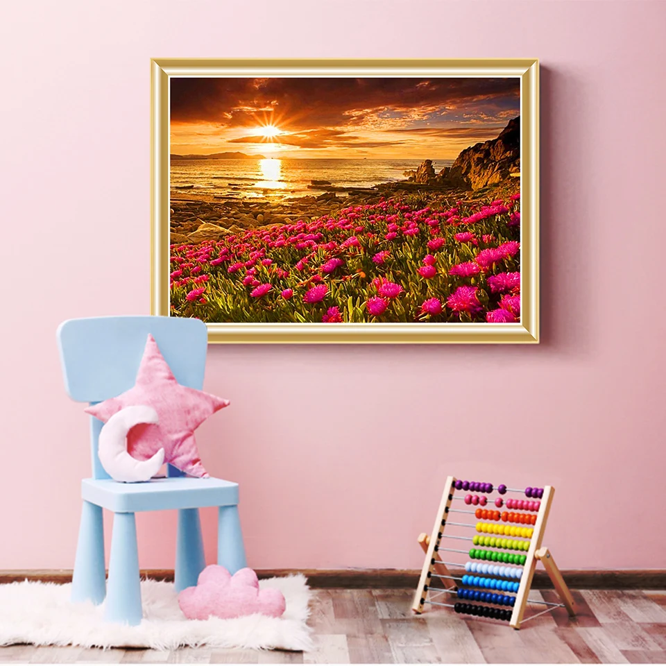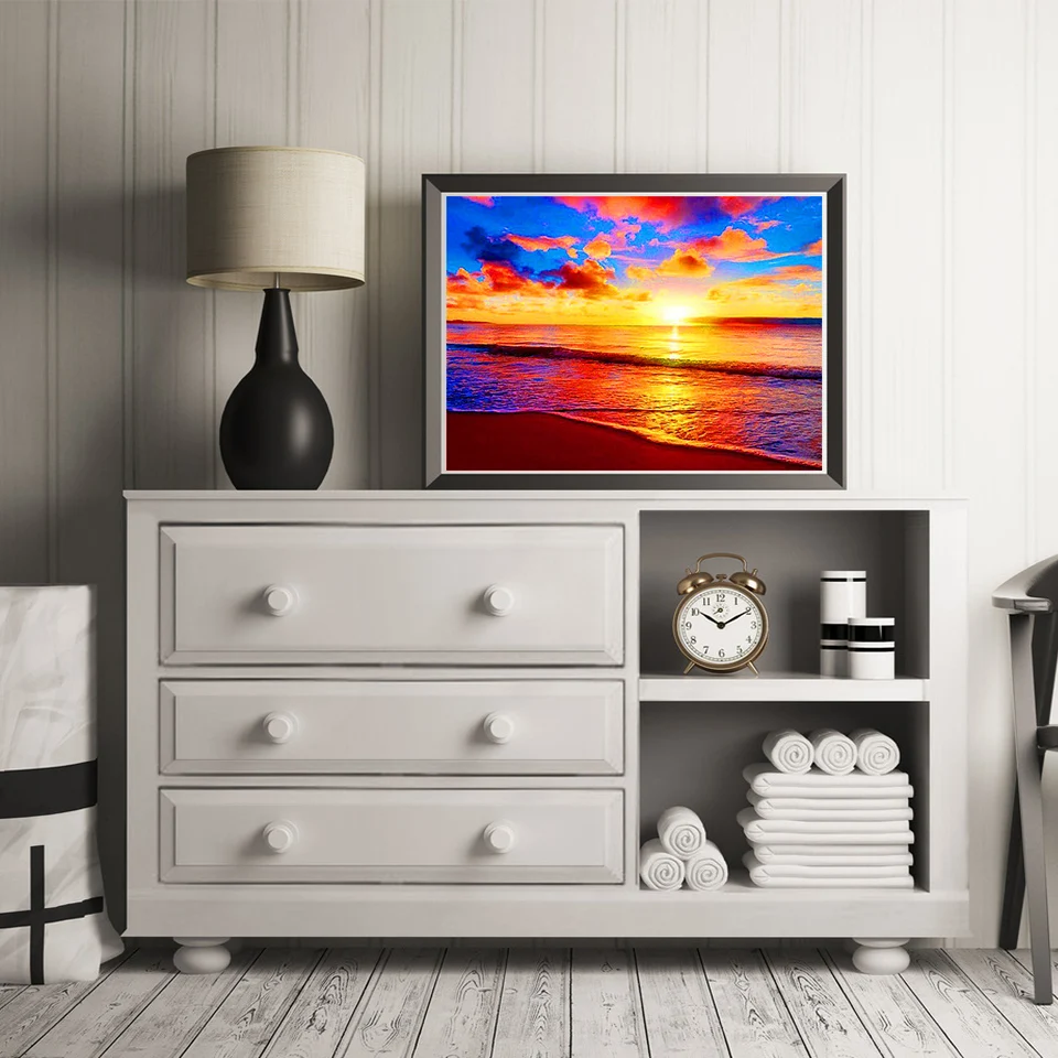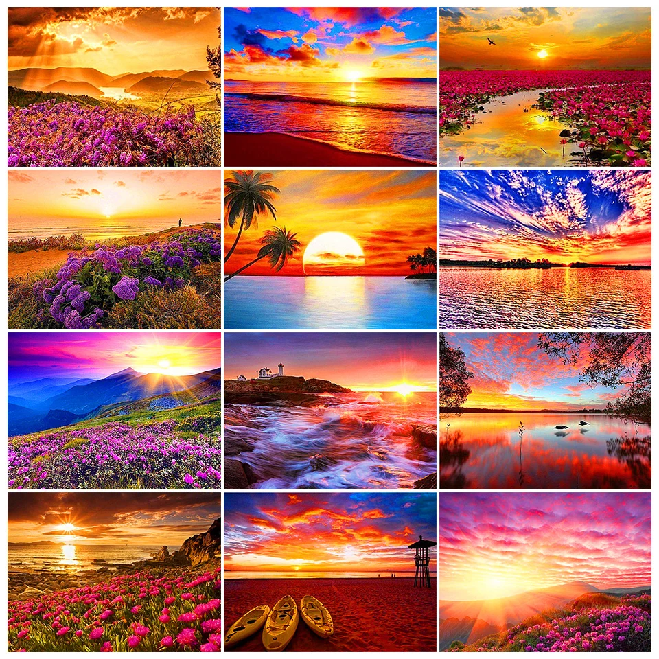 5D алмазная живопись сделай сам, закат, прибрежный пейзаж, полноразмерная Алмазная вышивка, картина стразы, мозаика, набор для украшения дома
