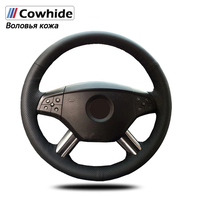 Черные чехлы на руль из натуральной кожи ручной работы для Mercedes-Benz W164 M-Class ML350 ML500 2005 2006 X164 GL-Class GL