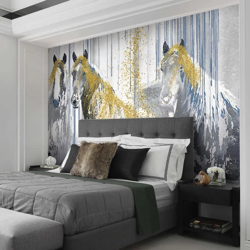 3D фотообои на заказ, черно-белая лошадь, художественная настенная ...
