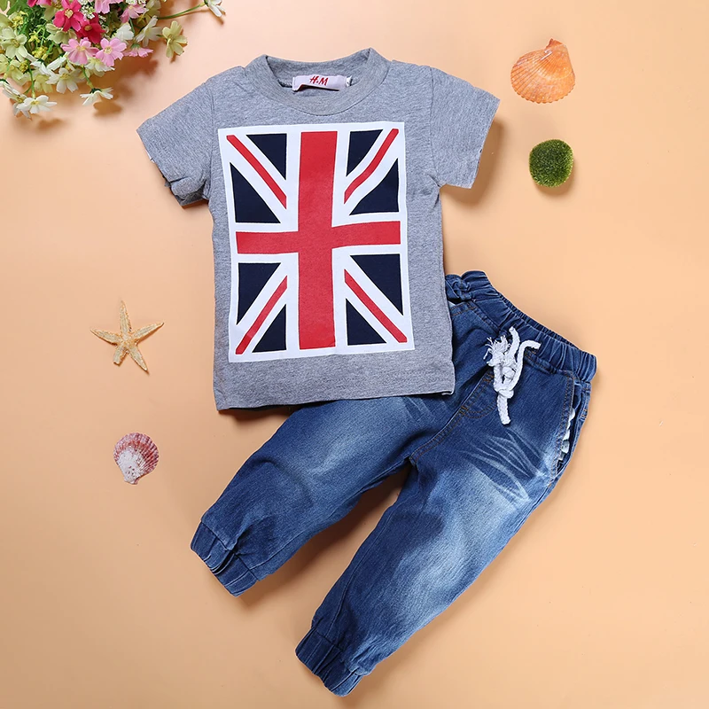 От 2 до 7 лет модная детская одежда костюмы для мальчиков комплект летней одежды из 3 предметов для маленьких мальчиков, 2 предмета, хлопковые топы с короткими рукавами + джинсы