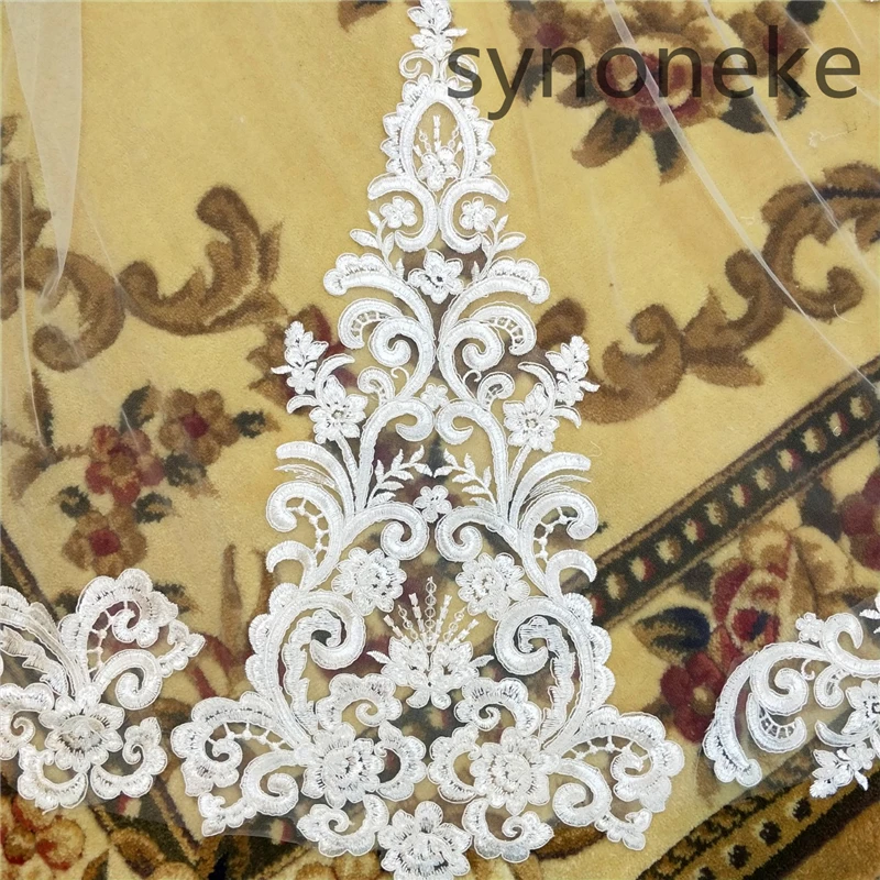 Свадебная фата белого цветацвета слоновой кости, с кружевным краем, длинная, размера плюс