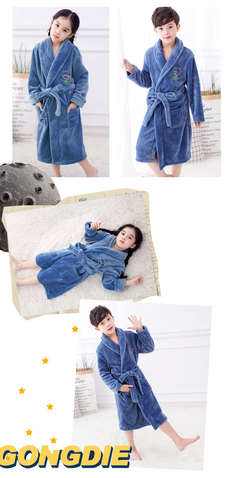 Детский халат; Фланелевая ночная рубашка для мальчиков; Сезон осень...