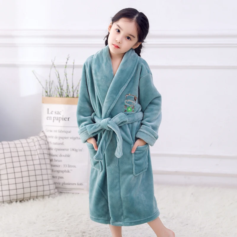 Осенне-зимняя детская одежда для сна для девочек; Фланелевый утепленный детский банный халат с рисунком; Пижама для подростков; Одежда для сна; Халат
