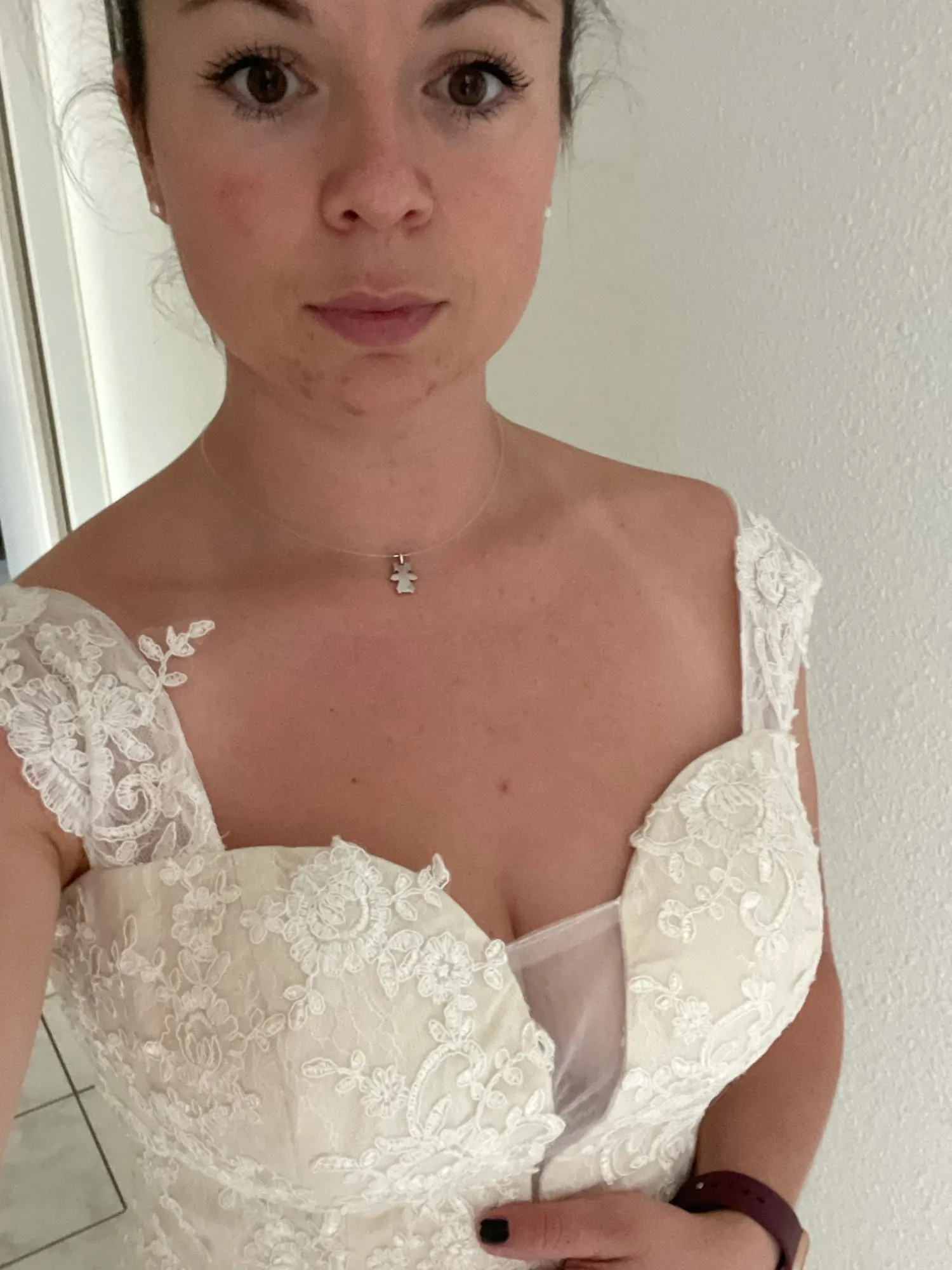 Я заказал это платье для моей свадьбы. Какое разочарование. Ремни не падают так сильно, как на фото, передняя часть полностью открыта на груди, что делает ее очень вульгарной. Фотография все еще хорошо скрывает грудь с деталями кружева. Я не могу носить это для моей свадьбы. Не считая тона, используемого продавцом в наших обменах...