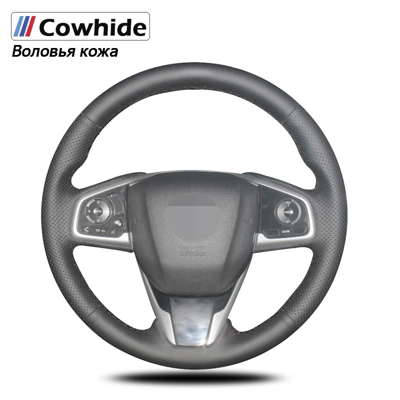 Чехлы на руль из натуральной кожи черного цвета для Honda Civic, Civic 10 2016-2019, CRV CR-V, 2017-2019, четкость 2016-201