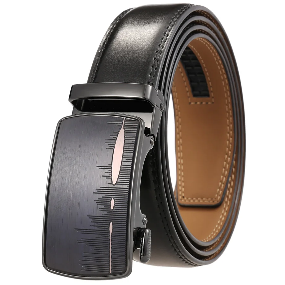 Ремень мужской из натуральной кожи с автоматической пряжкой, формальный модный роскошный черный пояс, 33 вида, G186