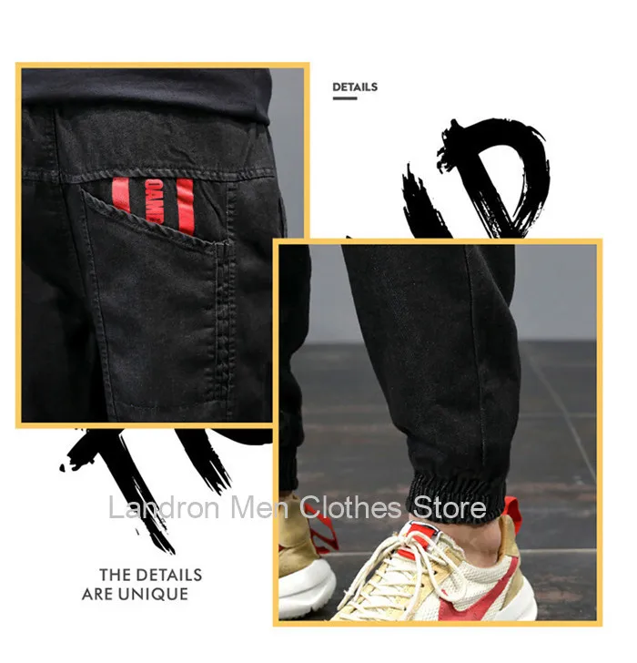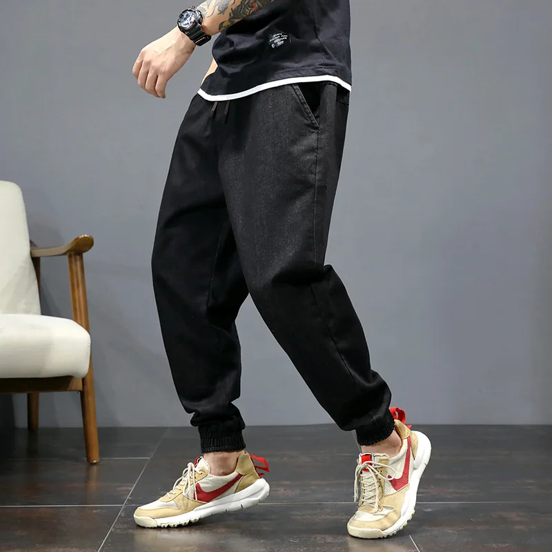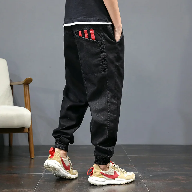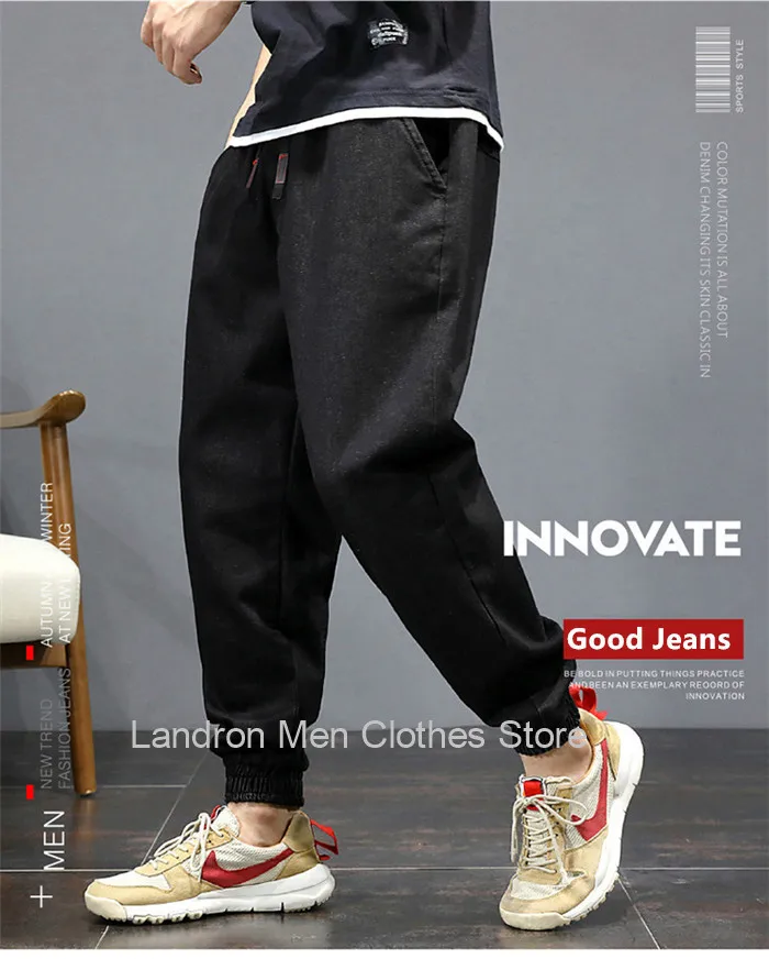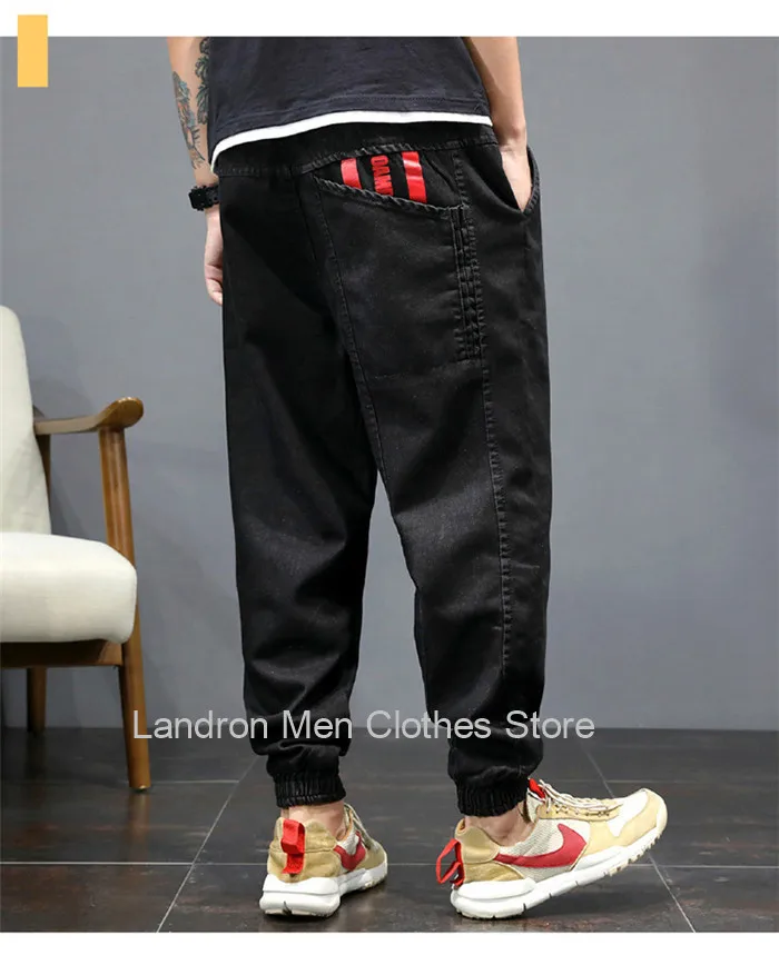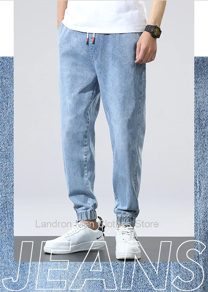 Джинсы мужские стрейчевые, джоггеры из денима, тянущиеся джинсы для подростков, повседневные брюки в японском стиле хип-хоп, синий цвет, размеры 4XL5XL6XL7XL
