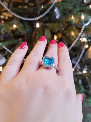 Ładny pierścionek, ładnie błyszczy. Kolor kamienia ciemniejszy i intensywniejszy niż na zdjęciu sprzedawcy. Otrzymałam go w 2,5 tygodnia od zamówienia, dobrze i bezpiecznie zapakowany.