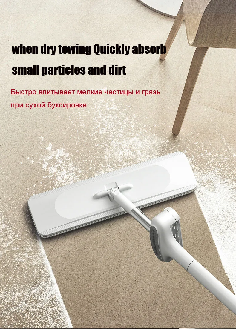 Швабра может быть использована как сухой, так и влажной. Он обладает сильным адсорбционным эффектом, когда он сухой, быстро адсорбирует мелкие частицы грязи, а пыль и волосы вытягиваются в чистоту.