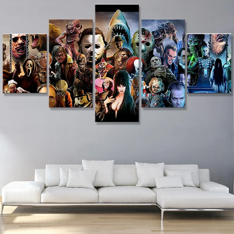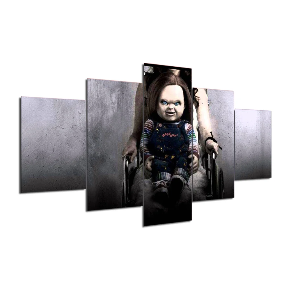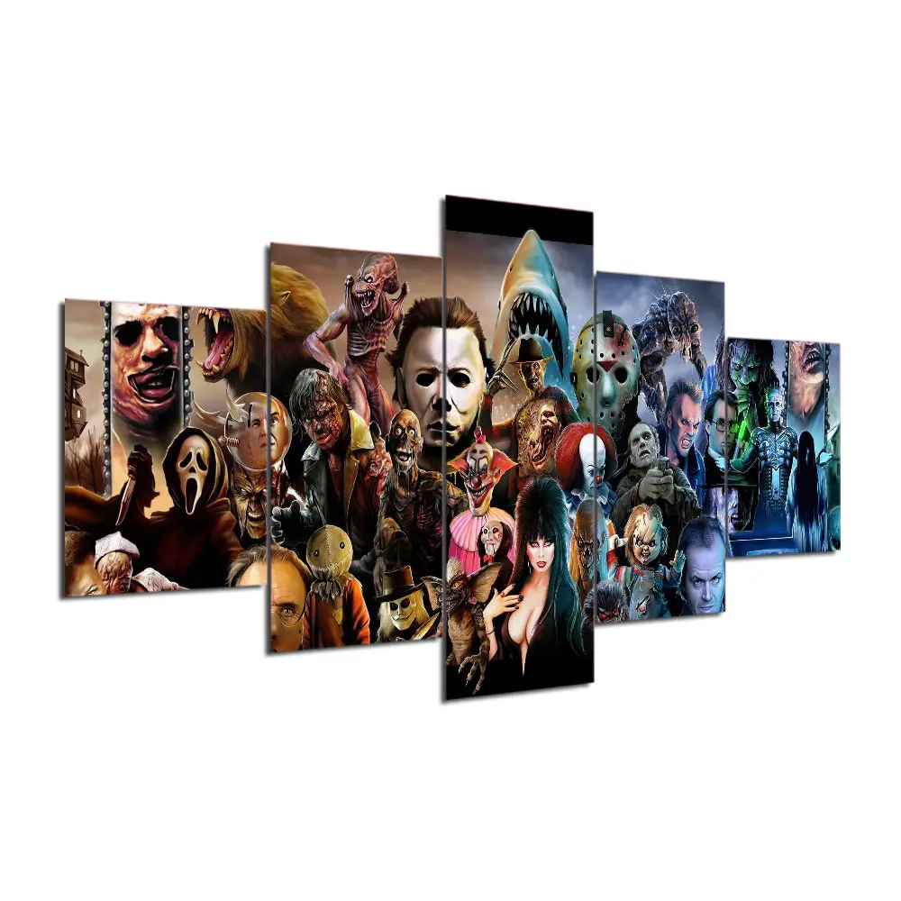 Hd печать 5 панелей настенный художественный плакат персонажа фильма клоуна 5 шт. ужас фильм-символов живопись Хэллоуин пила Чаки с рамкой