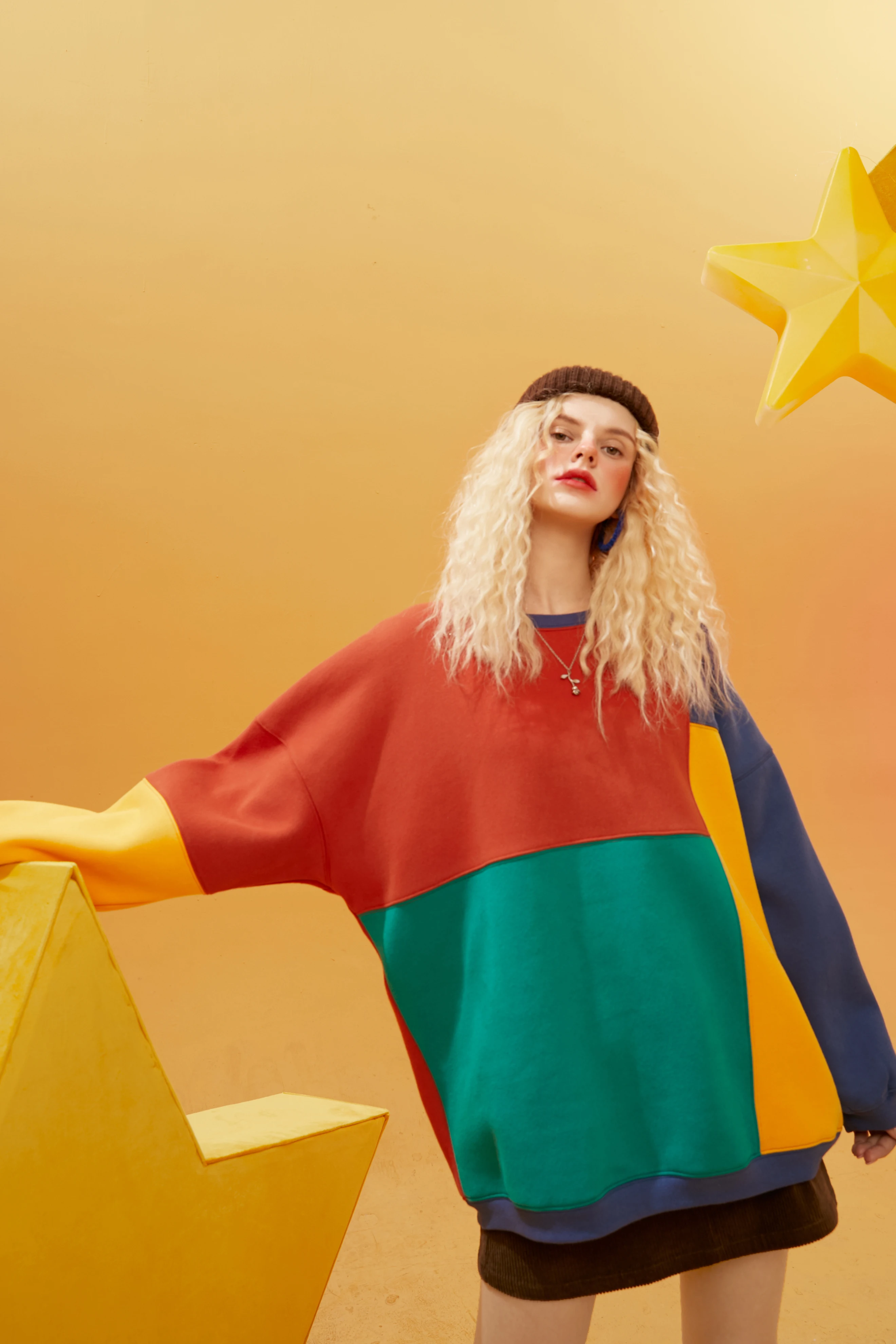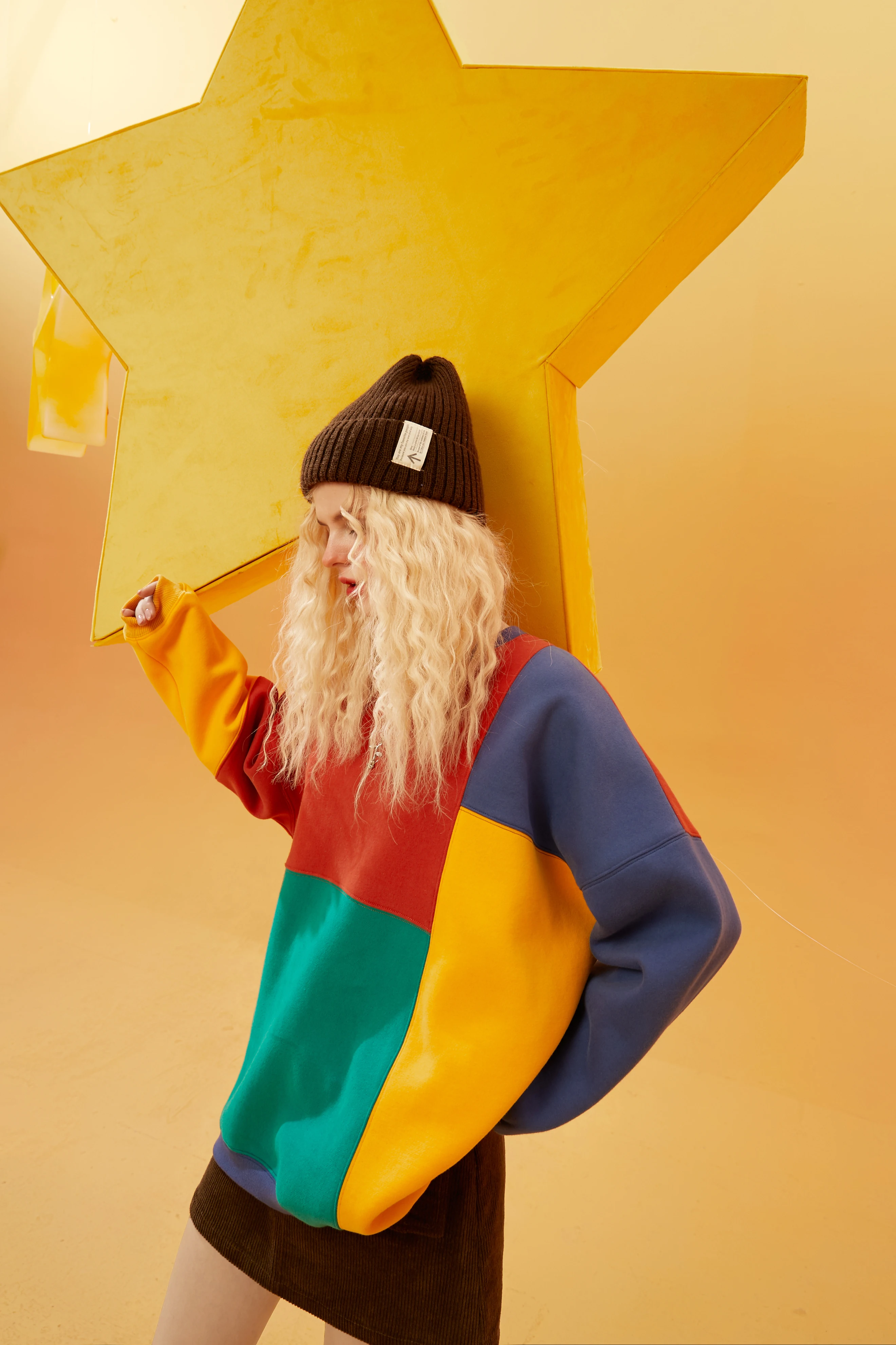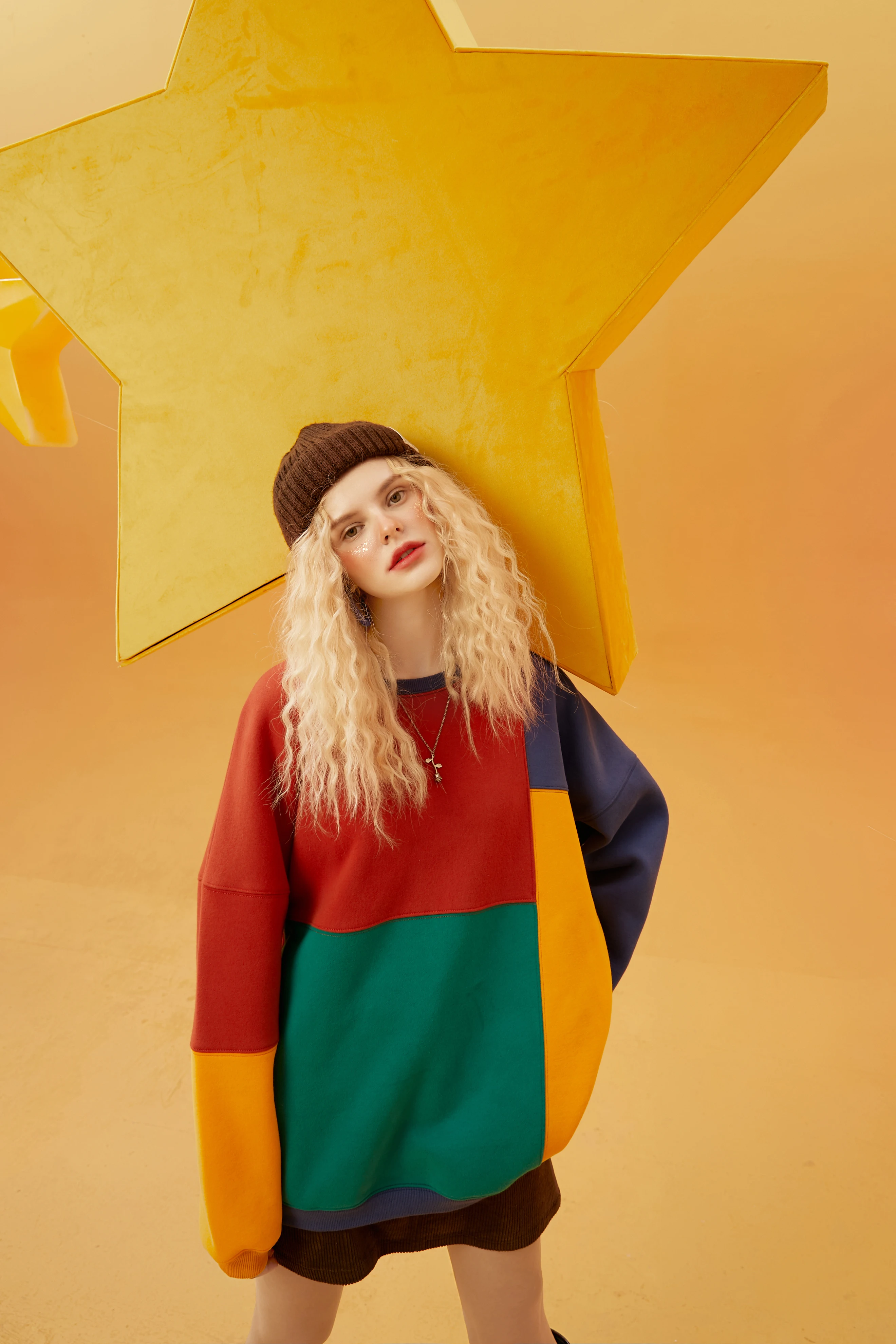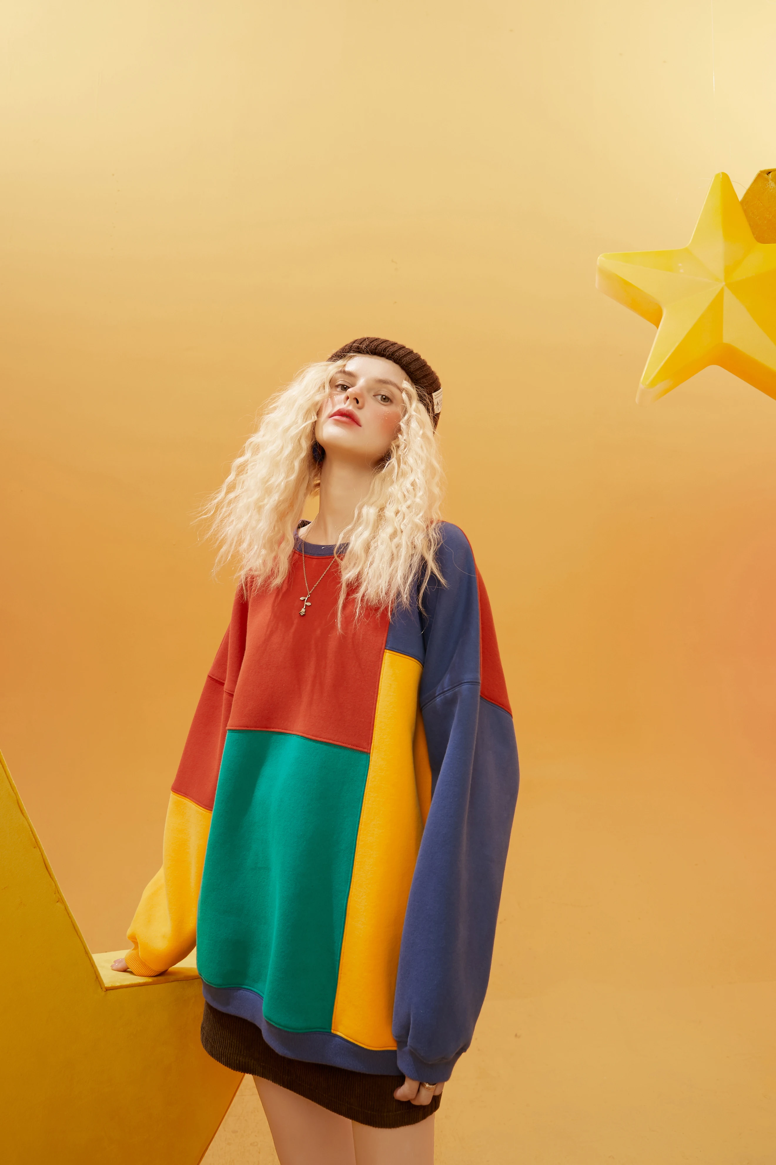Женский Повседневный пуловер большого размера ELFSACK, Свитшот в стиле КолорБлок в стиле Харадзюку, зима 2021