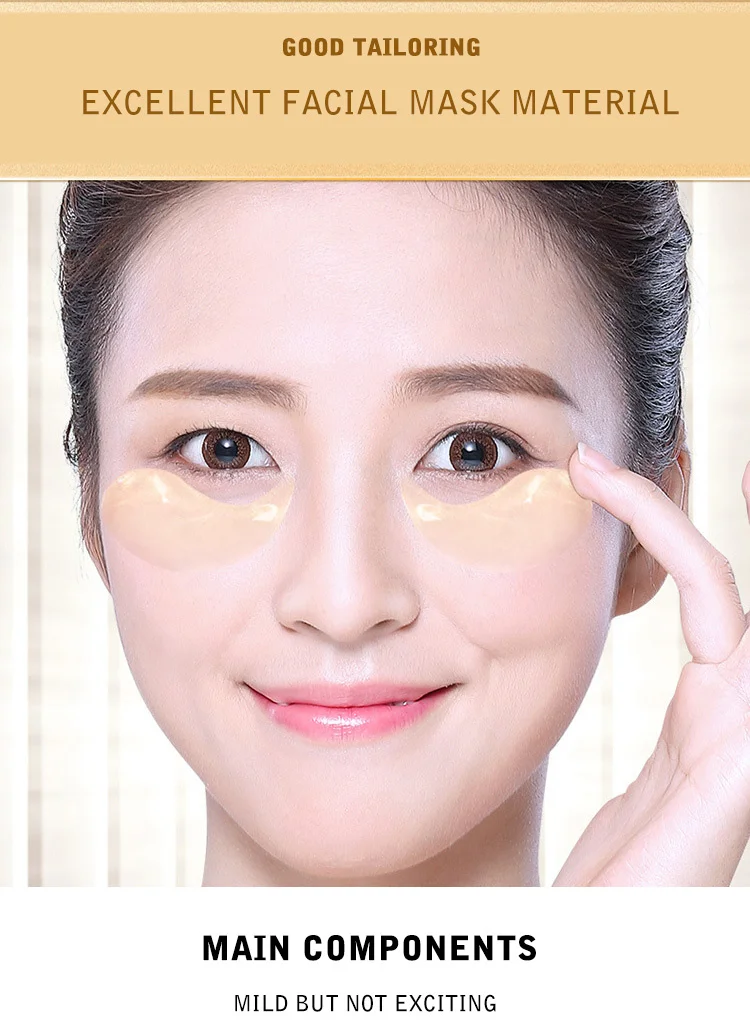 Золотые патчи на глаза: эффектно гладкие тонкие линии, ворсинки ног и мешки многих бессонных ночей. Сделайте вашу кожу восстановленной в увлажненной, пухлой коже молодости. Больше не устают и не спят. Отечность, морщины и темные круги, исчезнут.