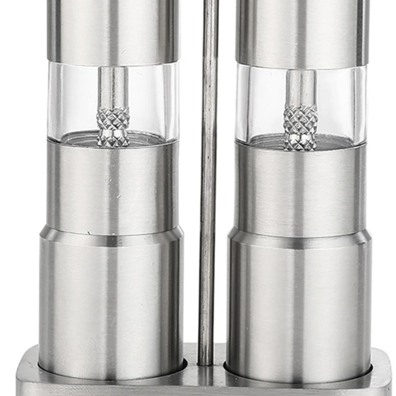 Набор мельница для соли и перца, набор из 2 предметов, мельница для специй, шейкер для перца, пресс для большого пальца из нержавеющей стали с подставкой для хранения
