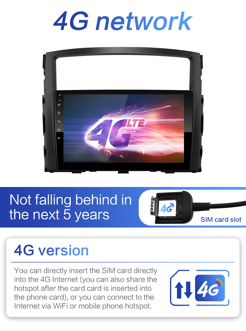 Версия 4GВы можете подключить sim-карту непосредственно в интернет 4G (вы также можете поделиться точкой доступа после вставки карты в карту телефона), или вы можете подключиться к интернету через Wi-Fi или мобильную точку доступа.Версия WiFiВы можете подключаться только к Интернету через WiFi или мобильные точки доступа.(Пожалуйста, будьте осторожны, чтобы не покупать ошибки,Не понимаю, можете связаться со службой поддержки клиентов)