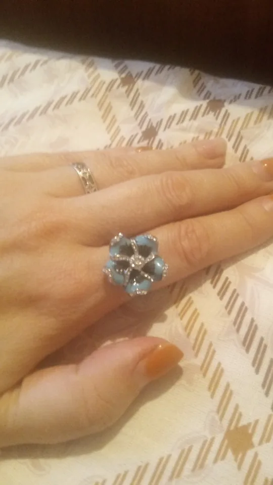 Кольцо женское из цинкового сплава, с синим цирконием и кристаллом ...
