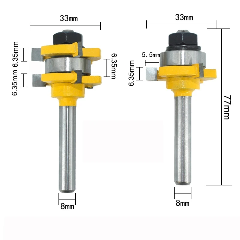 Комплект Т-образных фрез MC02121, комплект из 2 насадок 8 мм, для работ по дереву