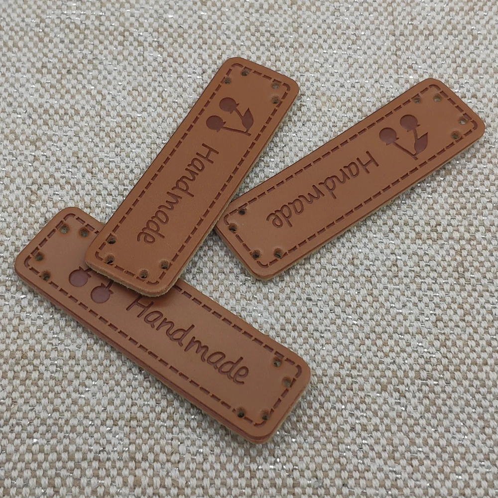 Коричневые кожаные этикетки ручной работы с логотипом вишни, натуральный стиль, Ручное шитье, этикетка для детской одежды, кожаная декоративная бирка