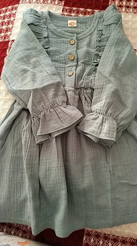 Красивое платье в соответствии с фотографией, немного разочарован хлопчатобумажной марлевой тканью, немного поврежденной и изогнутой, качество для обзора